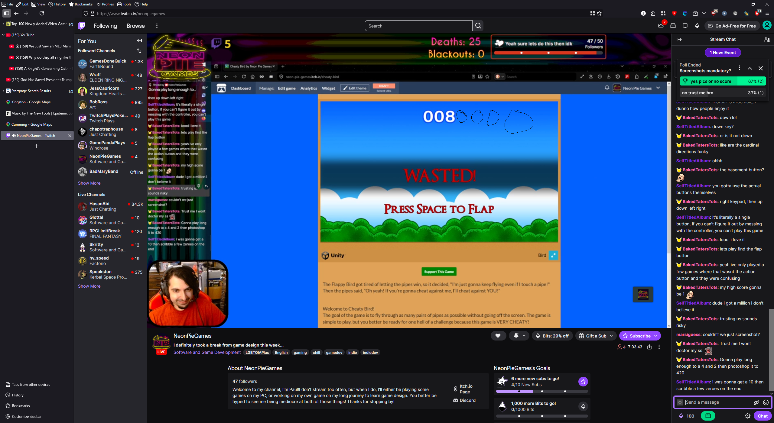 The Flappy Bird got tired of letting the pipes win, so it decided, "I'm just gonna keep flying even if I touch a pipe!"